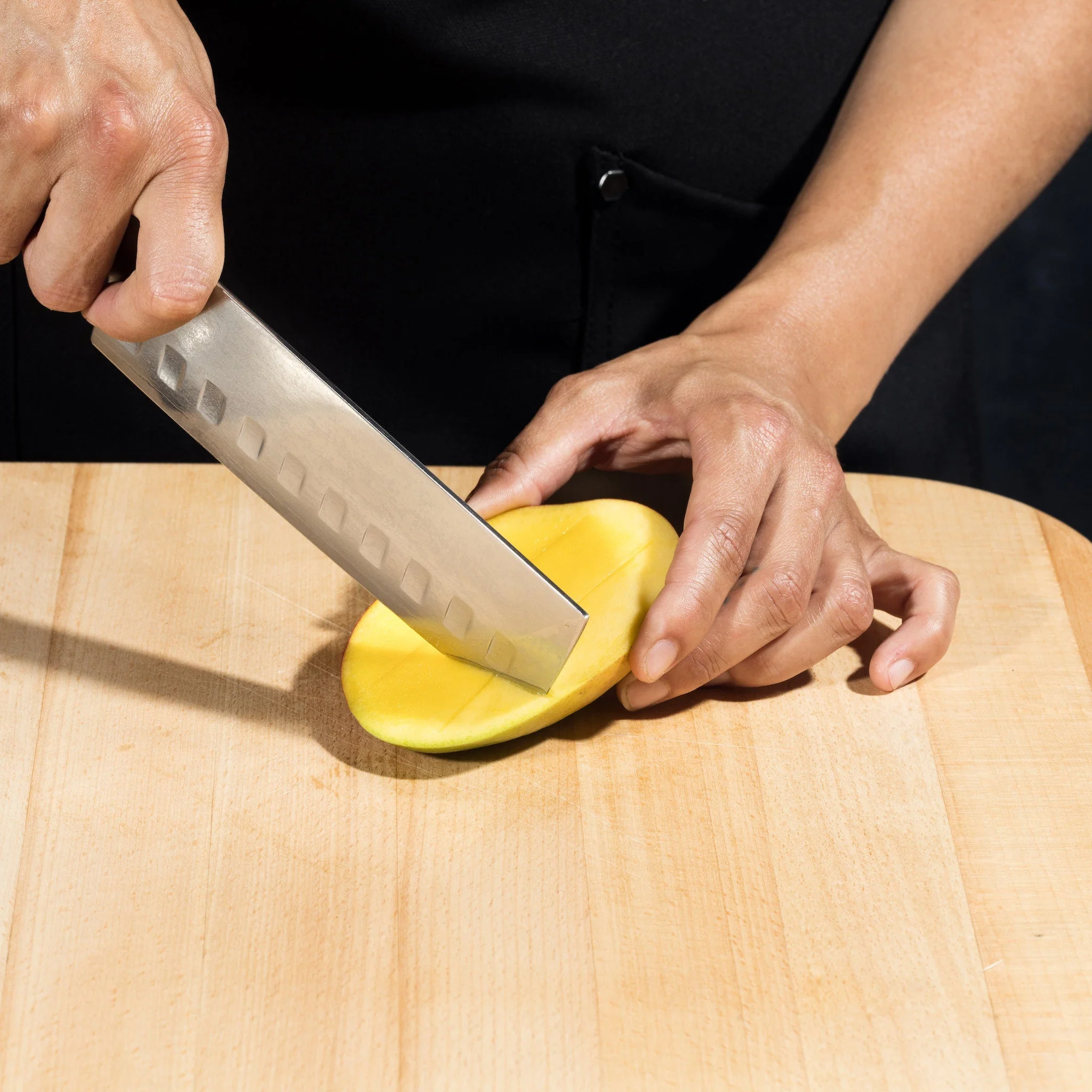 Our Nakiri knife delivers the cutting power and precision you need for food prep. Thinner and lighter than a cleaver, its double-beveled edge and extremely hard blade make quick work of fruits and vegetables without bruising even the most delicate ingredients. Perfectly balanced with a rectangular shape and blunted tip, it’s designed to be used with one hand or two for maximum versatility. So whether you’re mincing garlic, slicing tomatoes, or chopping an onion, our Nakiri knife makes it look easy.